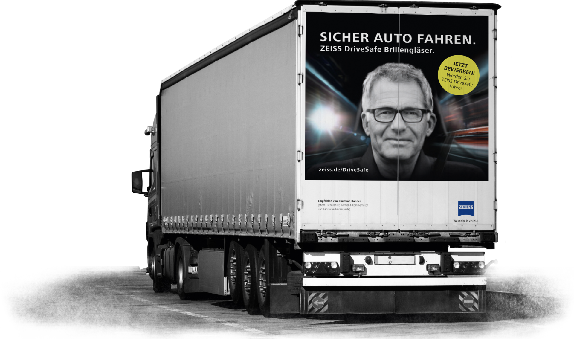 Mit renommierten Forschungsinstituten entwickelt und von Menschen empfohlen, die wissen, von was sie reden: die neuen ZEISS DriveSafe Brillengläser speziell für Autofahrer. Außergewöhnlich große Zielgruppe – spezielle Kommunikation. Mit dem früheren Formel-1-Rennfahrer und Motorsportexperten Christian Danner als Testimonial erstellten wir eine crossmediale Kampagne, die sowohl klassische Medien bedient als auch Spielraum für innovative Werbeformen bietet.