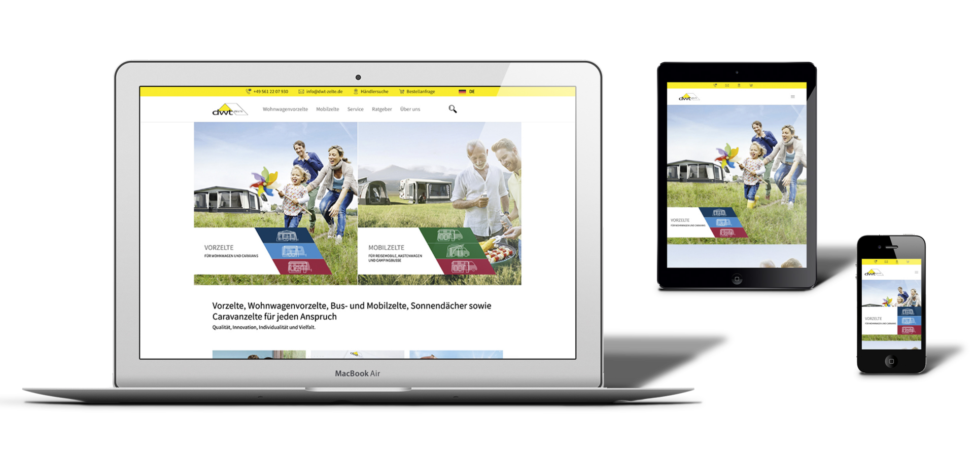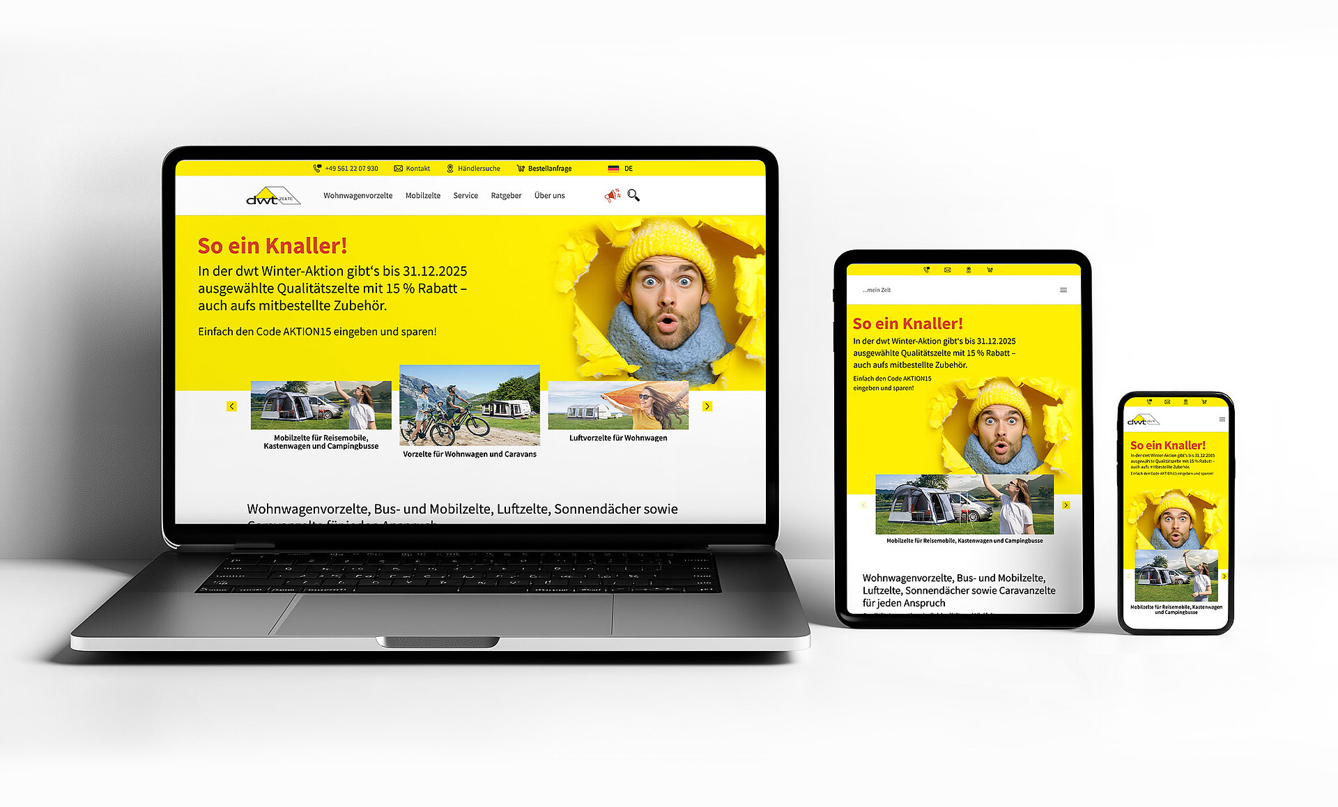 Brand, Analog, Digital, PR, LiveDen Kunden dwt-Zelte und unsere Agentur verbindet eine vertrauensvolle Kooperation, die im Jahr 2000 ihren Anfang nahm und bis zum heutigen Tag hochspannend ist. Das hat in unserer schnelllebigen Branche echten Seltenheitswert! Umso mehr schätzen wir diesen Agenturkunden, der zu den bedeutenden Playern im europäischen Markt für hochwertige Vorzelte der unterschiedlichsten Kategorien zählt. Was die gemeinsamen Projekte in über 24 Jahren anbelangt, ist im Lauf der Zeit eine riesige Menge zusammengekommen. Dabei waren und sind wir neben der Budgetführung, neben Beratung und Planung der gesamten cross-medialen Kommunikation insbesondere für die strategische Positionierung und Weiterentwicklung der Marke tätig. Eine zentrale Herausforderung liegt dabei immer wieder darin, mit hochdynamischen Marktentwicklungen proaktiv umzugehen und so den geschäftlichen Vorsprung von dwt-Zelte weiterhin zu unterstützen.