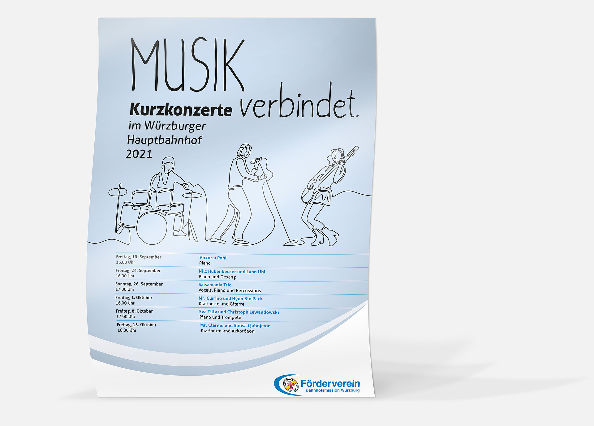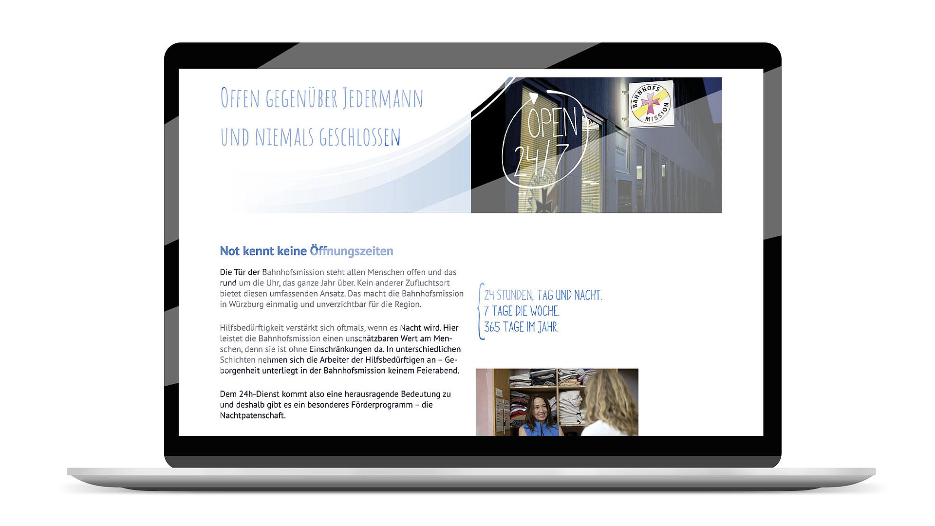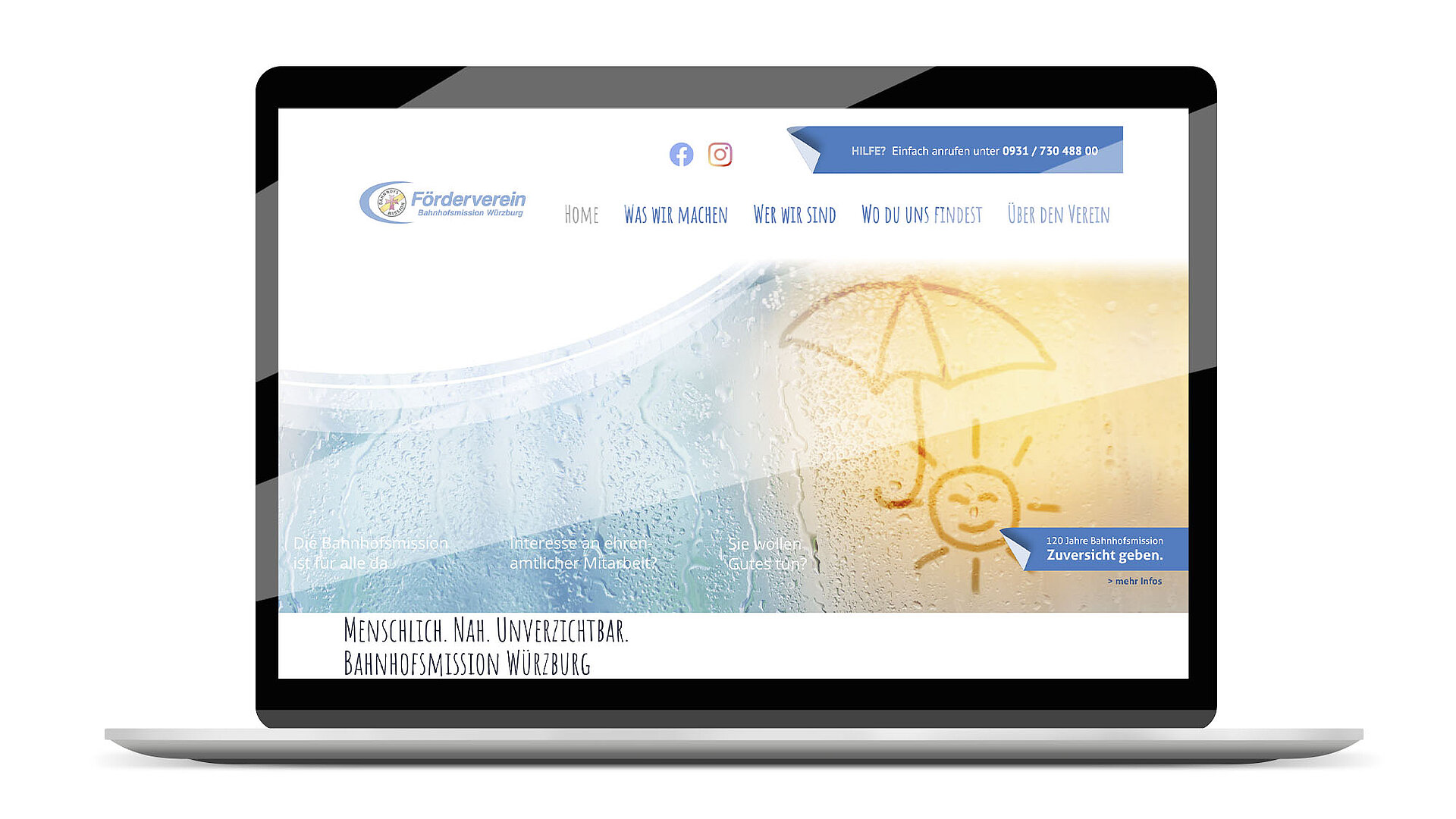 Brand, Analog, Digital/Webauftritt/SoMe, Content, PR, Events, Exhibition, Shooting, Workshops – pro bonoKriegsflüchtlinge, wachsende Altersarmut, Migration, Gewalt gegen Frauen und Kinder – oder einfach nur ein alter Mensch, der am hektischen HBF Würzburg sein Portemonnaie verloren hat: Das Engagement der Bahnhofsmission Würzburg und ihres Fördervereins war schon immer weit gefächert. Aktuell nimmt die Bedeutung wegen der politischen und gesellschaftlichen Entwicklungen weiter zu; vor allem, weil hier als einziger Rettungsanker weit und breit eine Station rund um die Uhr offen steht, an die sich Menschen in akuter Not wenden können. Wer Gutes tut wie hier, der darf nicht diskret sein, sondern muss laut und deutlich darüber sprechen. Nur so kommt der hohe Einsatz der vielen, meist ehrenamtlichen Mitarbeiter*innen in der breiten Öffentlichkeit an, wird sichtbar und hilft, neben der Anerkennung auch die dringend nötigen Spendengelder zu generieren. Wir unterstützen beim Erzeugen hoher Aufmerksamkeit, beim kommunikativen Auftritt, bei medialen Strategien und bei konzeptionellen Aktivitäten wie der Erfolgsaktion „Musik verbindet“. Dies tun wir pro bono, weil es uns ganz besonders am Herzen liegt.