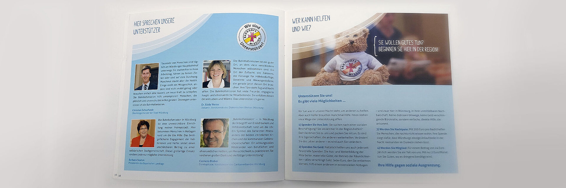 „Gemeinsam mit Euch haben wir Ideen entwickelt und es geschafft, auch schwierige Themen in der Öffentlichkeit zu kommunizieren. Wir sind dabei manche neuen Wege gegangen, denn „Not macht erfinderisch!“. Seit Jahren wächst das Interesse an unserer Arbeit und wir erfahren vermehrt Unterstützung. Die Bahnhofsmission ist in Würzburg und Umgebung zur sozial und ebenso gesellschaftlich unverzichtbaren Einrichtung geworden. Mit eurer Begleitung und spürbaren Solidarität bleiben wir mutig im Einsatz für die Menschen!“