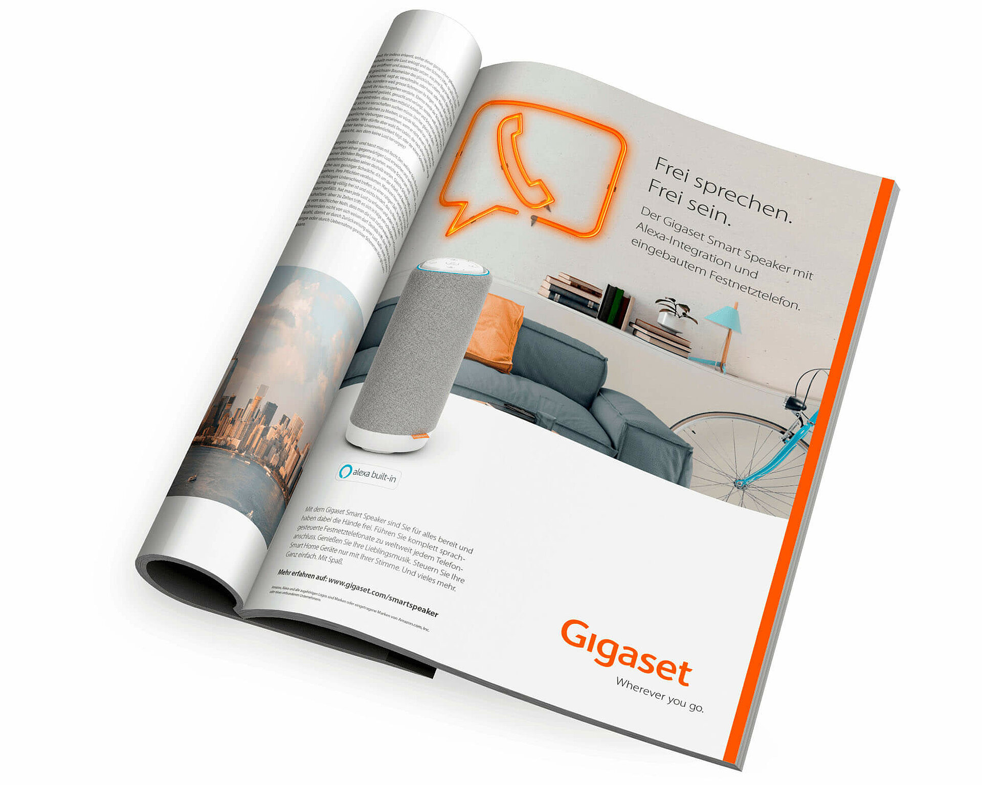 Der Gigaset Smart Speaker mit Alexa-Integration und eingebautem Festnetztelefon.