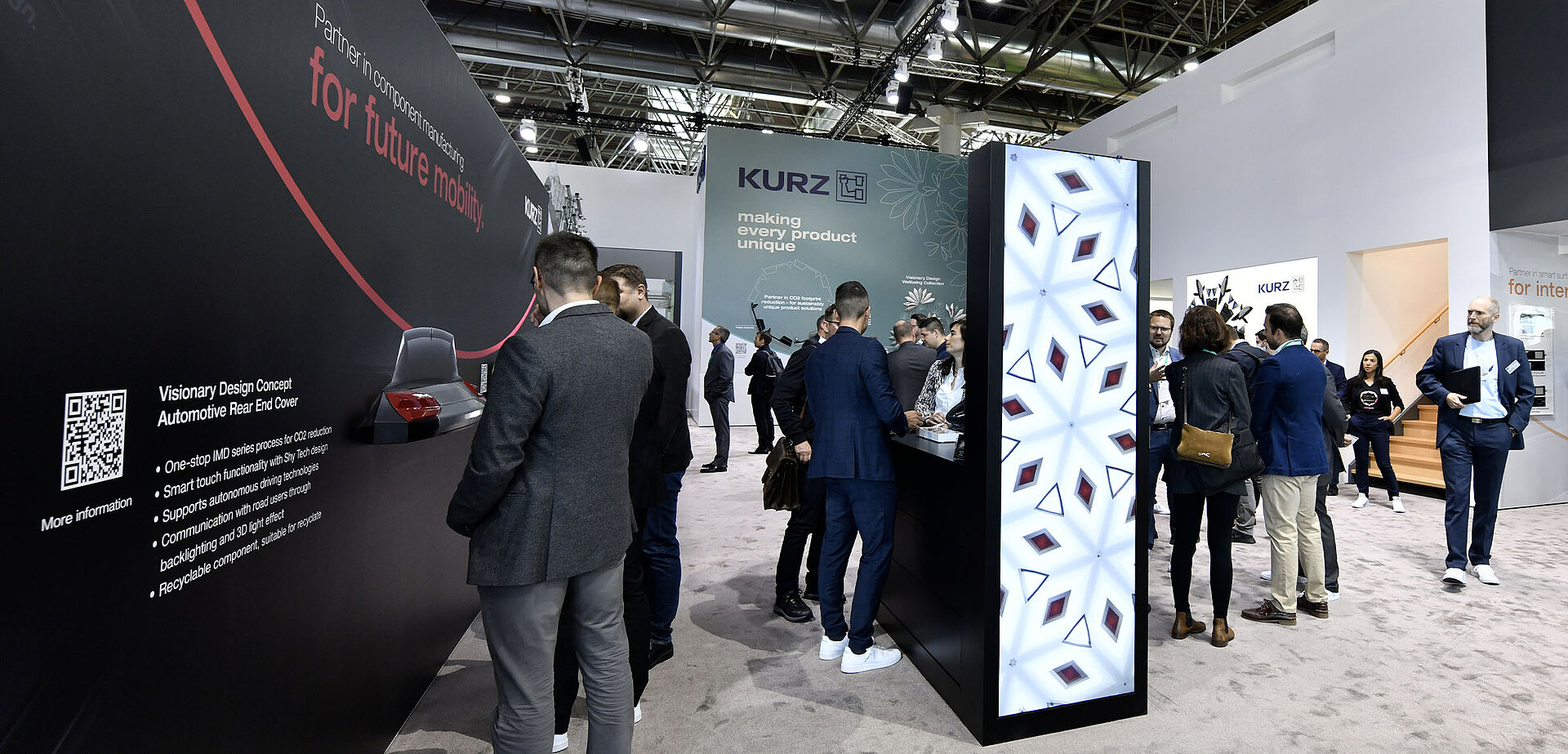 • Always available: Zahlreiche digitale Touchpoints über QR-Codes auf derMesse boten zu jeder Zeit Kontaktmöglichkeit zu KURZ.