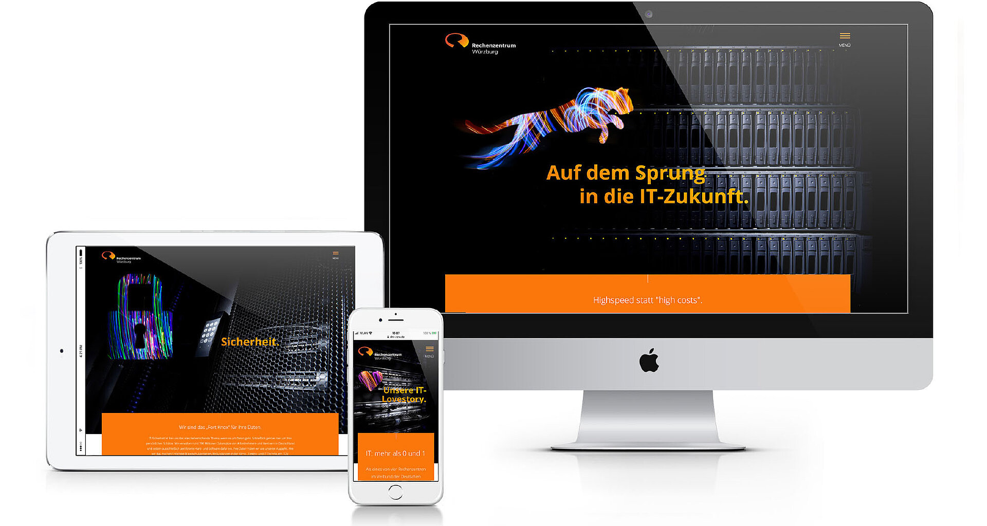 Neuer Auftritt für das RZW: Unter dem Motto „Auf dem Sprung in die IT-Zukunft“ entwickelten wir Corporate Design, Website, Logo und Raumgestaltung. Diese geballte Power und Innovationskraft sollte sich in einem neuen Außenauftritt widerspiegeln. Das Leitmotiv: „Auf dem Sprung in die IT-Zukunft“.
