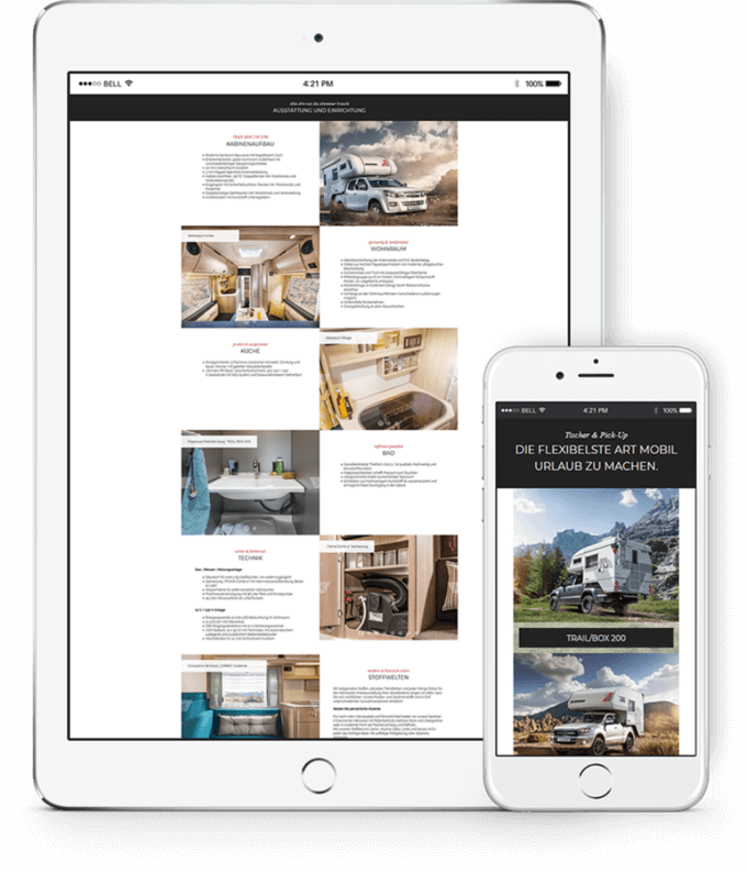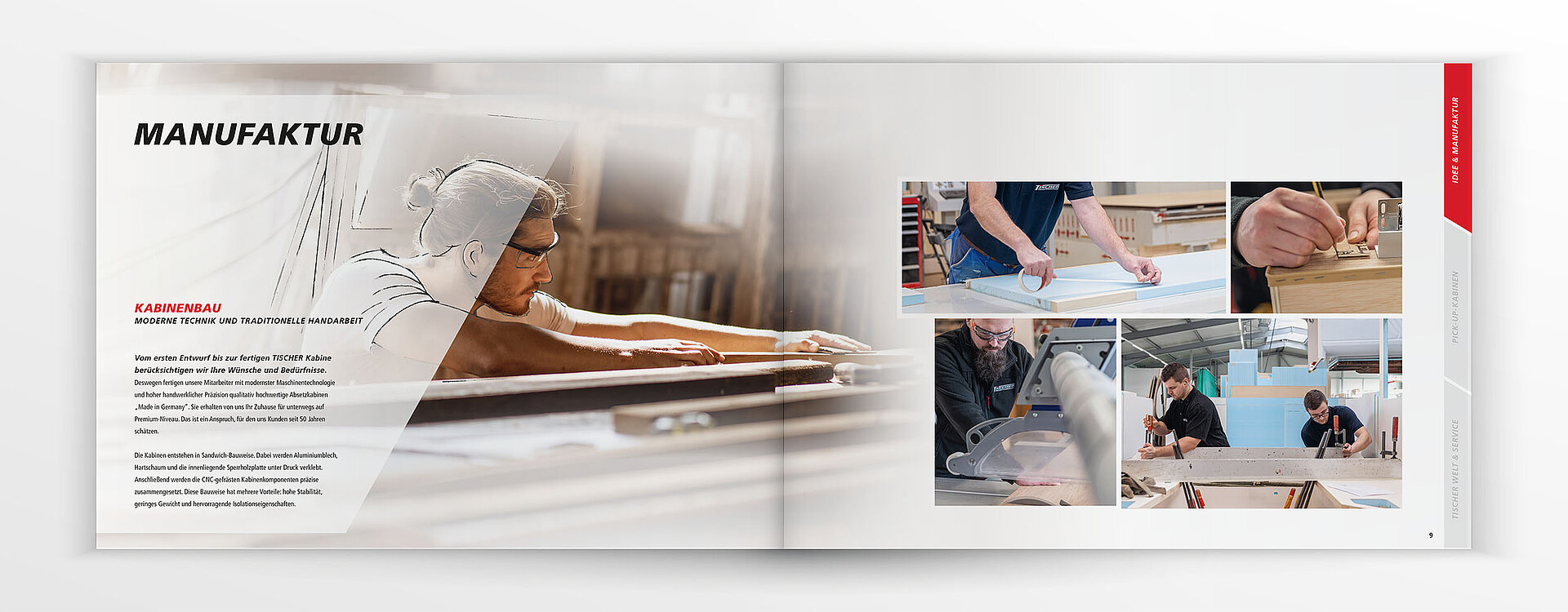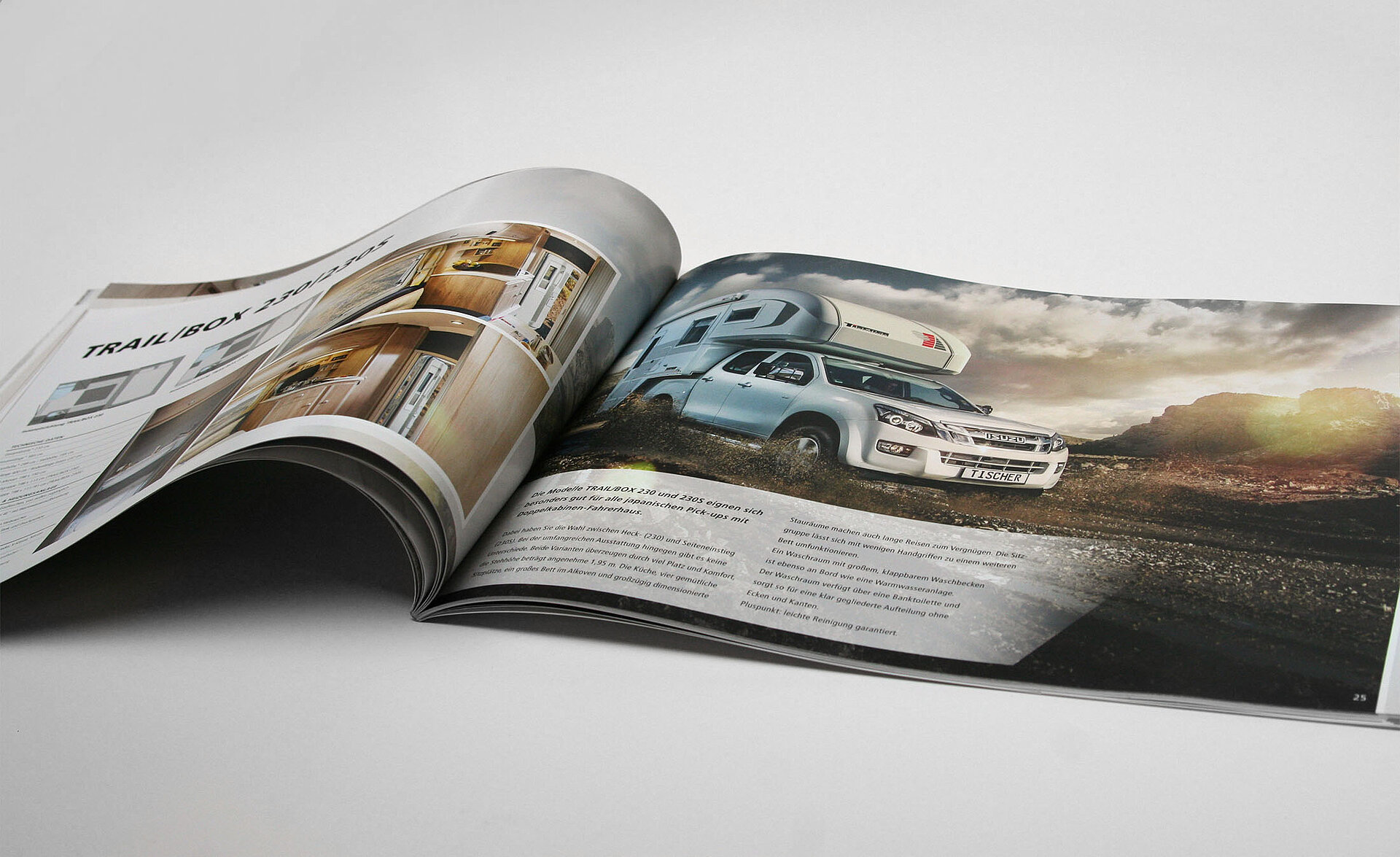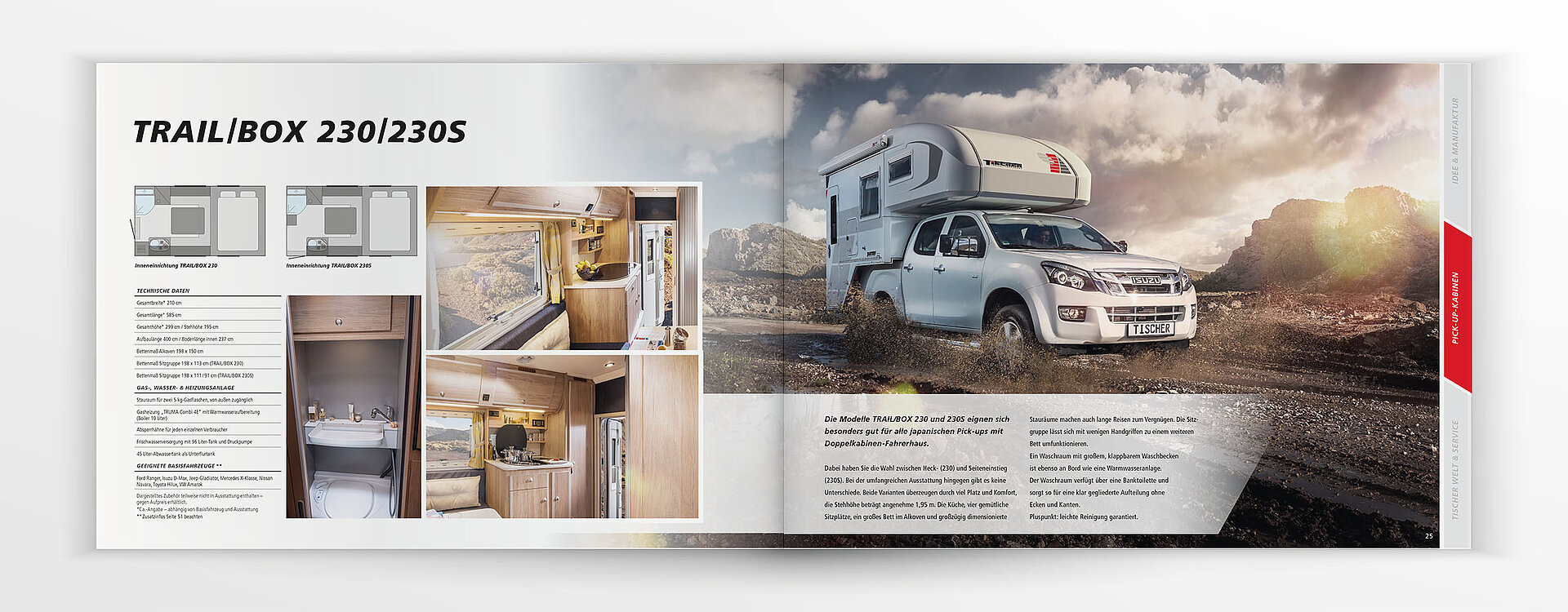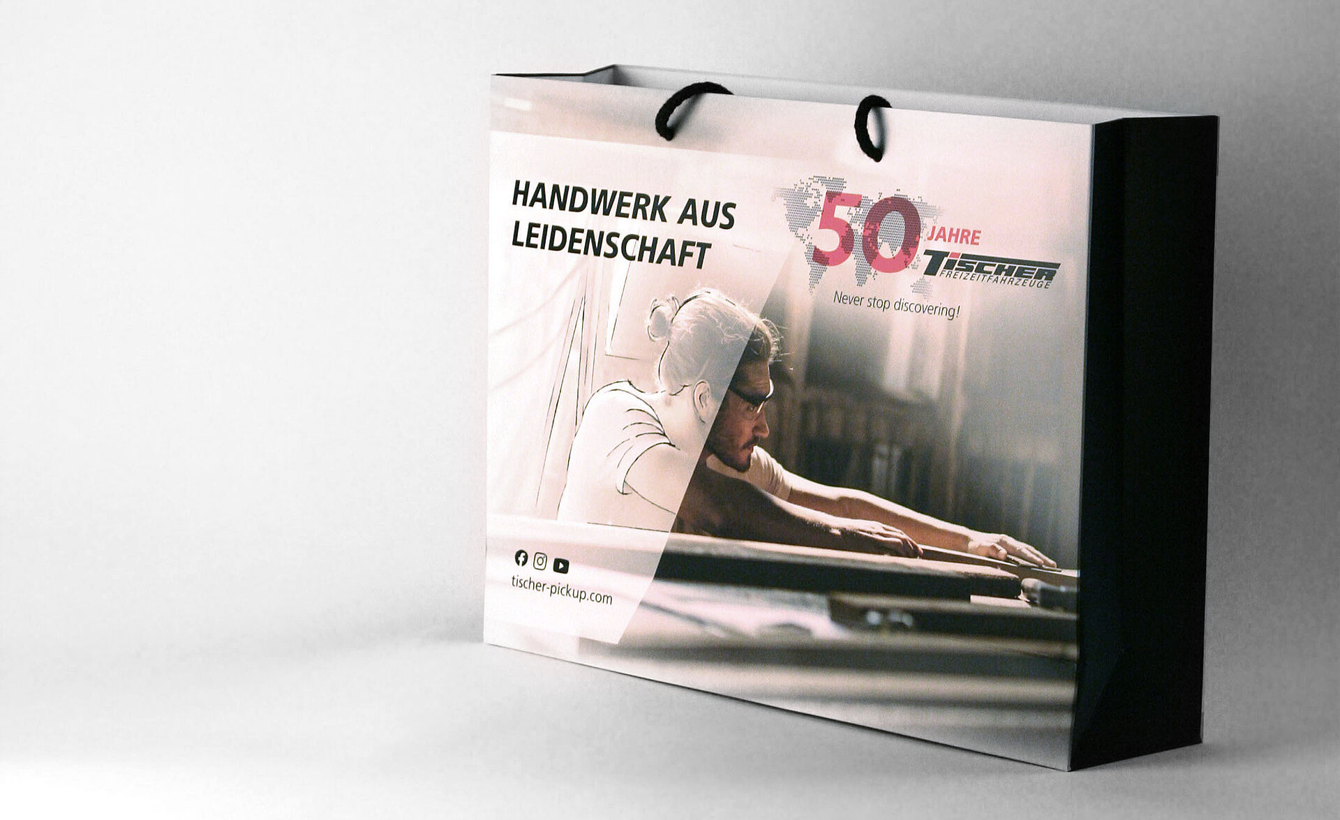 Freiheit mit Outdoor- und Offroad-Feeling – dafür steht Tischer Freizeitfahrzeuge. Dieses Freiheitsgefühl und die Vorteile einer Urlaubsform, die zunehmend beliebter wird, zu transportieren, ist Ziel der crossmedialen Kommunikation. Ein Hauptaugenmerk dabei liegt auf der emotionalen Inszenierung der Symbiose aus Pick-up und Absetzkabine. Aber auch die umfassende Darstellung technischer Daten und Details zum Fahrzeughandling finden Eingang in die Kommunikation. Die stetig wachsende Tischer-Community wird über regelmäßige Social-Media-Beiträge, aufmerksamkeitsstarke Messeauftritte und begeisternde Rallyes von der Marke überzeugt und in das Unternehmen eingebunden.