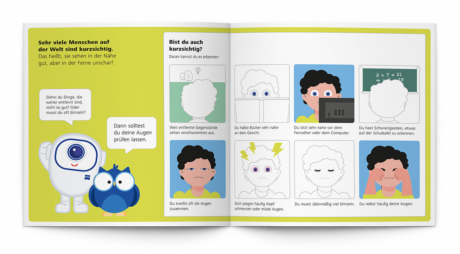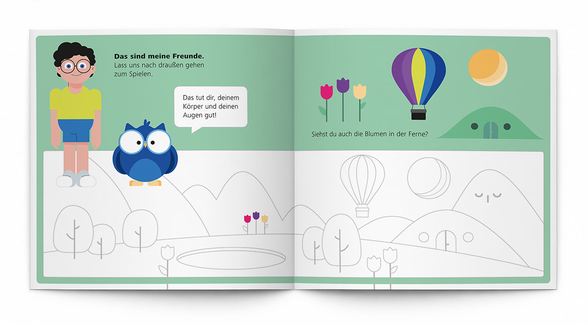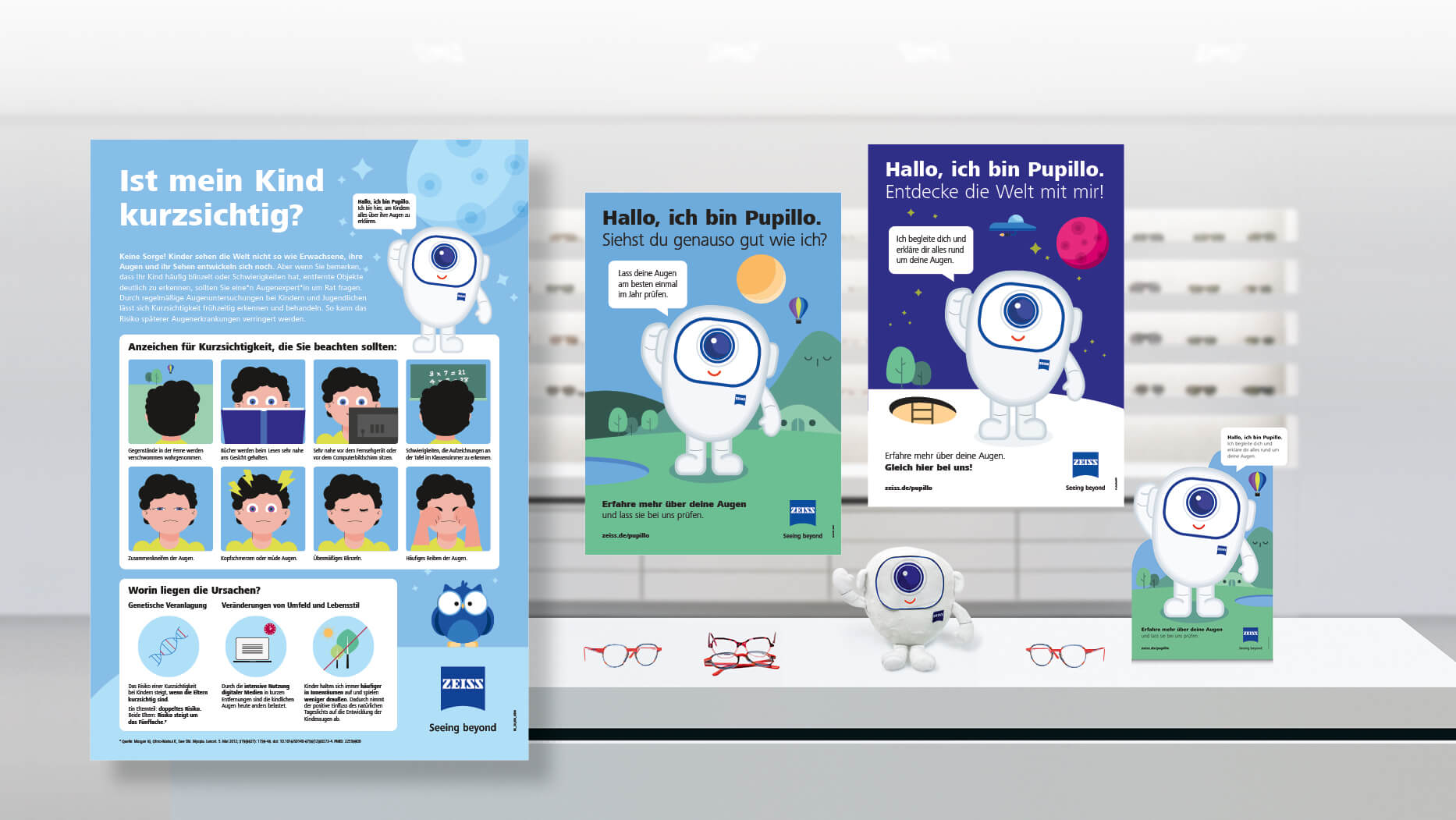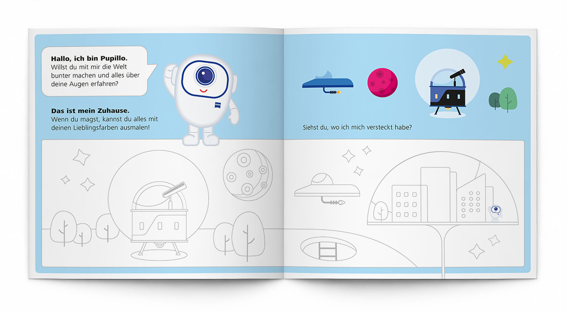 Für ZEISS hat kl,company ein kindgerechtes POS-Paket entwickelt, das Kinder und Eltern gleichermaßen anspricht: informativ, spielerisch, aufmerksamkeitsstark. Das Herzstück ist ein Mal- und Sehbuch, das das Thema Kurzsichtigkeit auf eine Art vermittelt, die Kinder wirklich erreicht. Ergänzt durch Werbemittel und Give Aways für Augenoptiker, Augenarztpraxen und Optometristen – direkt dort, wo die Entscheidung für eine Behandlung fällt.