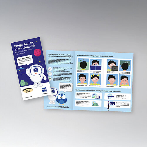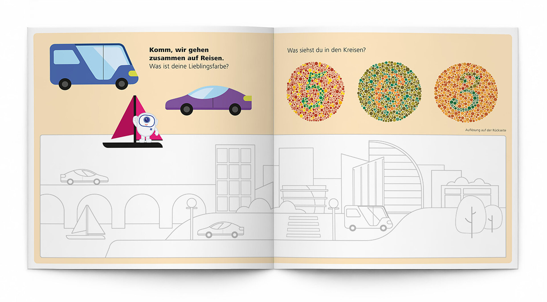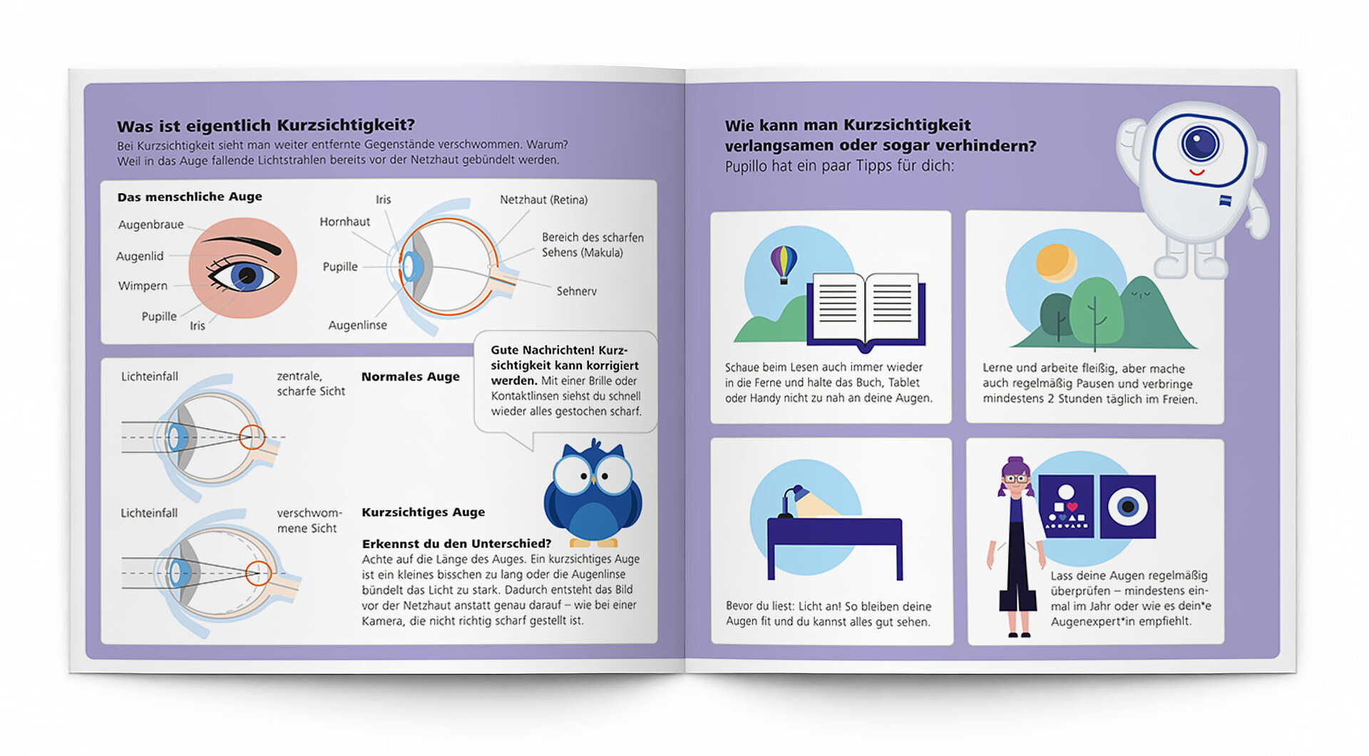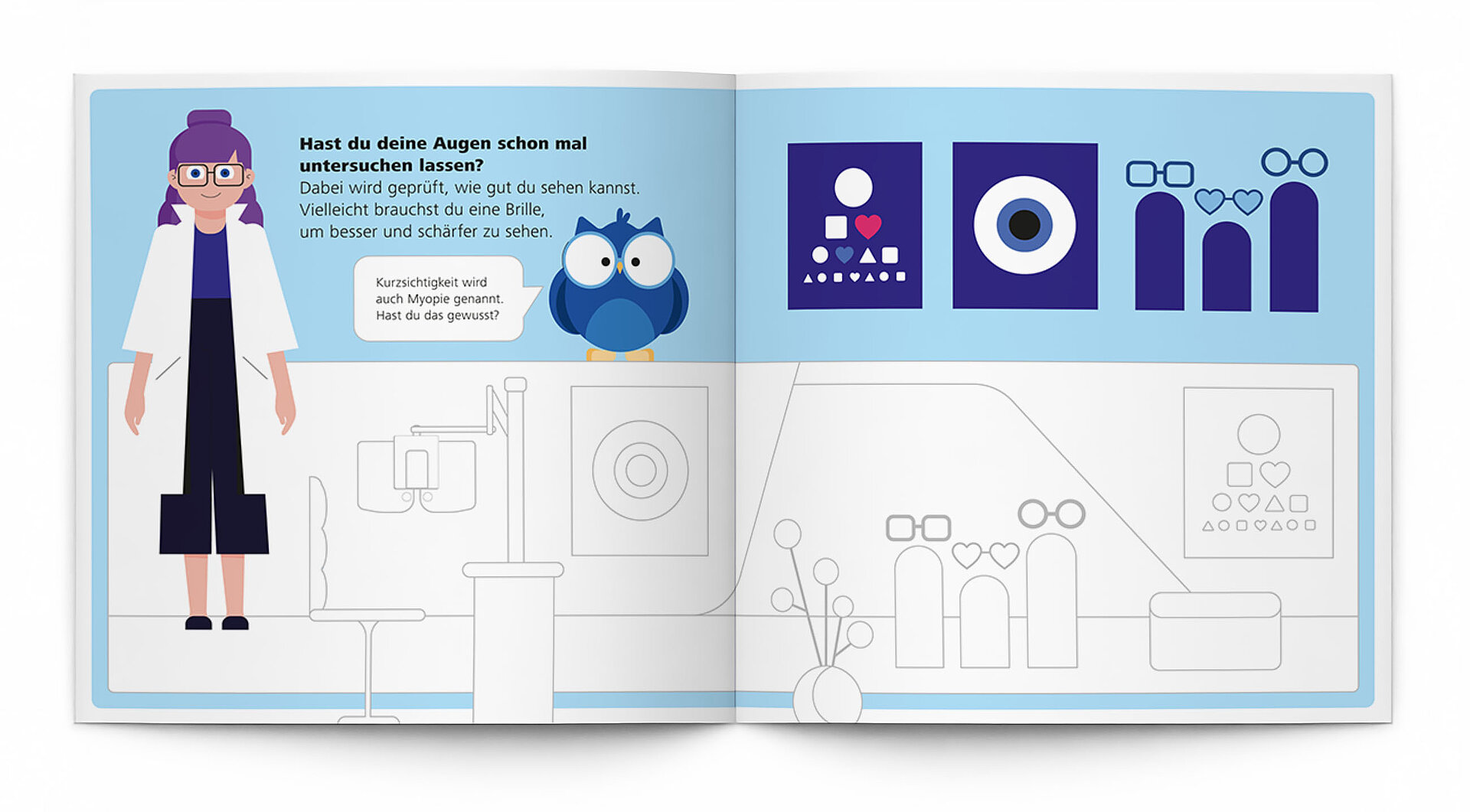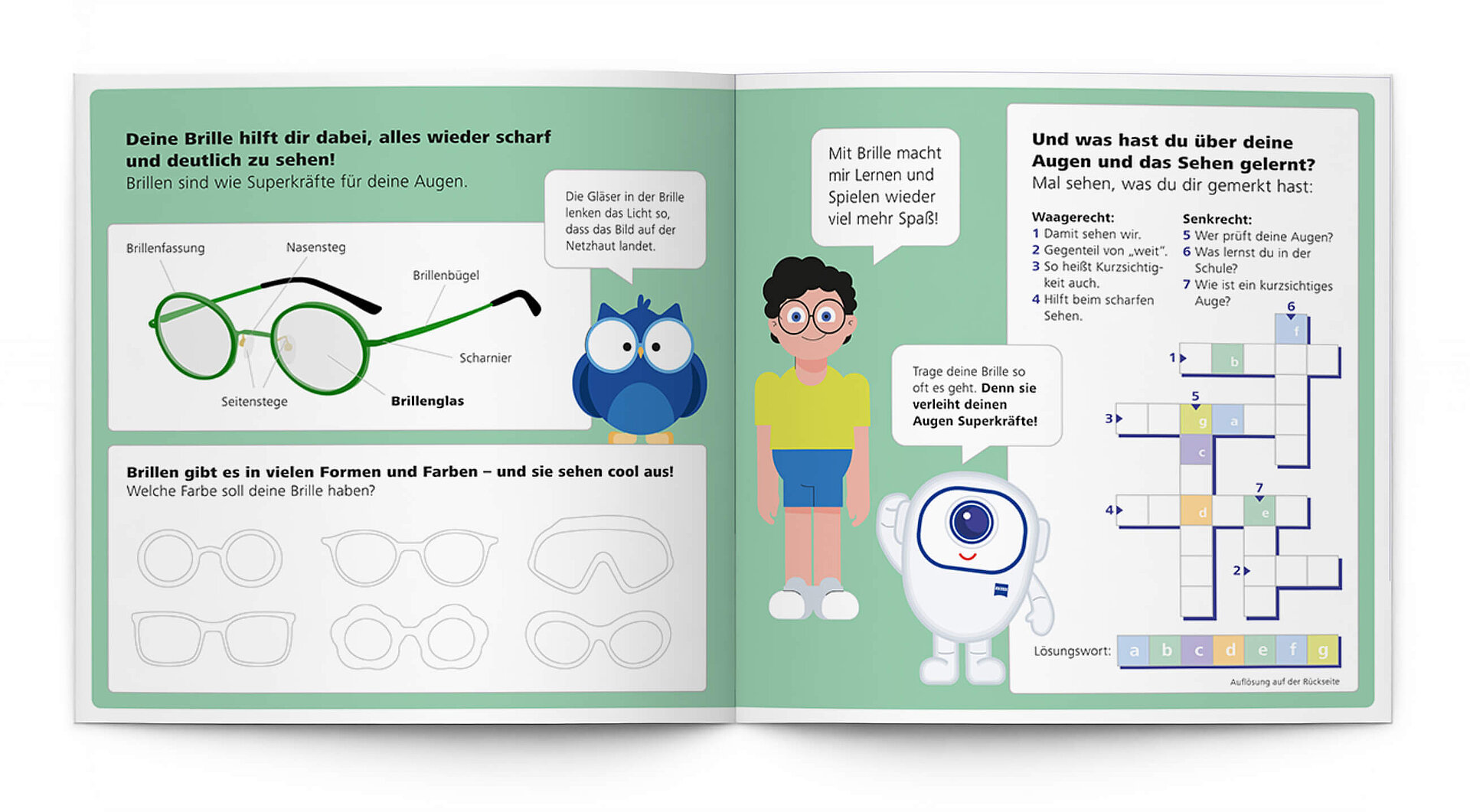 Für ZEISS hat kl,company ein kindgerechtes POS-Paket entwickelt, das Kinder und Eltern gleichermaßen anspricht: informativ, spielerisch, aufmerksamkeitsstark. Das Herzstück ist ein Mal- und Sehbuch, das das Thema Kurzsichtigkeit auf eine Art vermittelt, die Kinder wirklich erreicht. Ergänzt durch Werbemittel und Give Aways für Augenoptiker, Augenarztpraxen und Optometristen – direkt dort, wo die Entscheidung für eine Behandlung fällt.