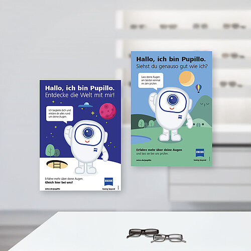 • Marketing-Materialien zur Auslage beim Augenoptiker, Augenarztpraxis und beim Optometristen